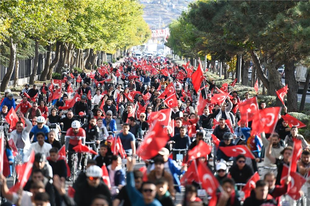 Katılımcılara bisiklet sürüşü öncesi seslenen Başkan Büyükkılıç, Biriz beraberiz, hep beraber Cumhuriyetiz, Selçukluyuz, Osmanlıyız, ay yıldızlı Türk bayrağımızın sevdalısıyız" dedi.
