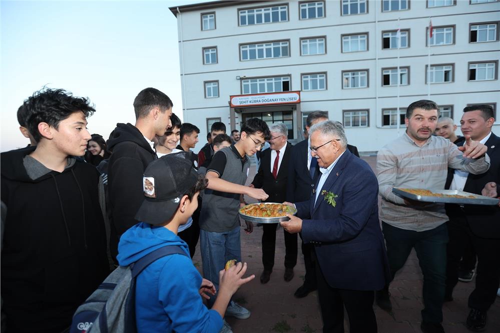 Başkan Büyükkılıç, ilçedeki temasları kapsamında Şehit Kübra Doğanay Fen Lisesi’ni de ziyaret etti. Öğrencilerle sohbet eden Büyükkılıç, kütüphane, bilgisayar ve bank gibi taleplerin anında karşılanması talimatını verdi. Öğrencilere tatlı ikram eden Başkan Büyükkılıç, 17-18-19 Ekim tarihlerinde düzenlenecek 7. Kayseri Bilim Festivali’ne davette bulundu. Öğrencilerin festivale katılımı için ulaşım desteği sağlanacağını da müjdeledi.