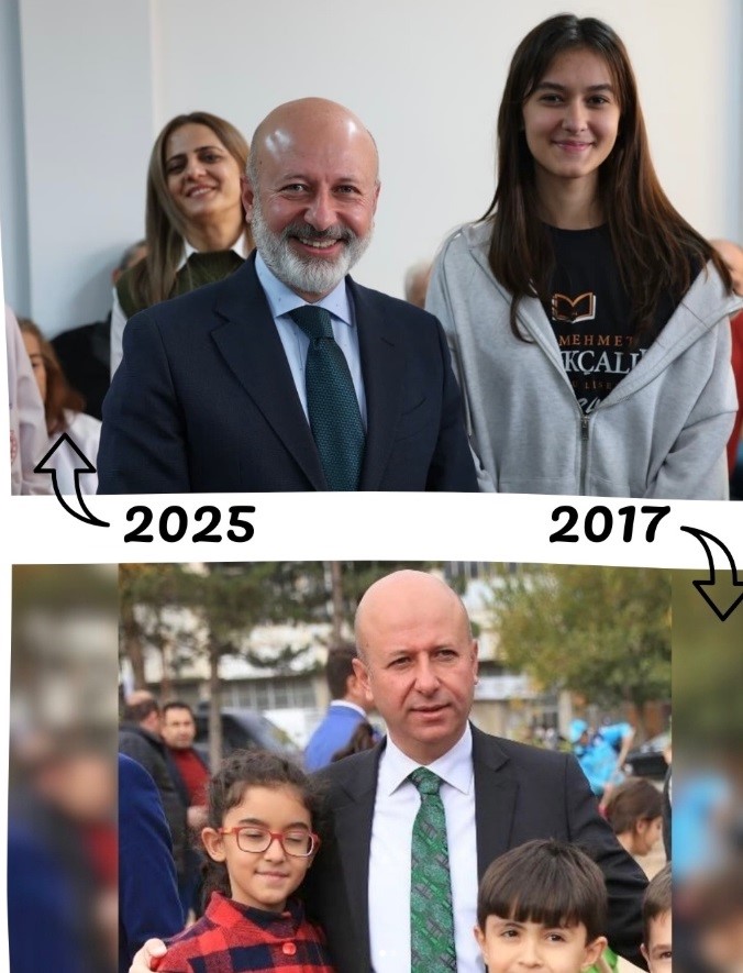 Başkan Çolakbayrakdar, iki öğrencinin 8 yıl önce birlikte çekildikleri fotoğrafı göstererek yanına gelmesi üzerine büyük bir tebessümle duygularını dile getirdi. "Zaman geçiyor ama gönülden gönüle kurulan bağın hiç değişmediğini görmek gerçekten çok kıymetli" diyen Başkan Çolakbayrakdar, Beril ve Ecrin’in artık 12. sınıfa giden, pırıl pırıl iki genç olarak karşısında durmasının kendisini oldukça mutlu ettiğini vurguladı.