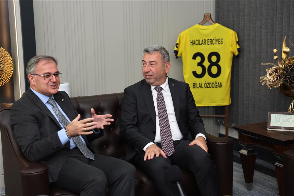 Ziyarette, Hacılar Belediyesi’nin yürüttüğü çalışmalar ve ilçeye kazandırılacak yeni projeler hakkında bilgi paylaşan Başkan Özdoğan, misafirleriyle fikir alışverişinde bulundu. Görüşmede ilçenin kalkınması, alt yapı ve üst yapı yatırımları ile sosyal projeler de ele alındı.