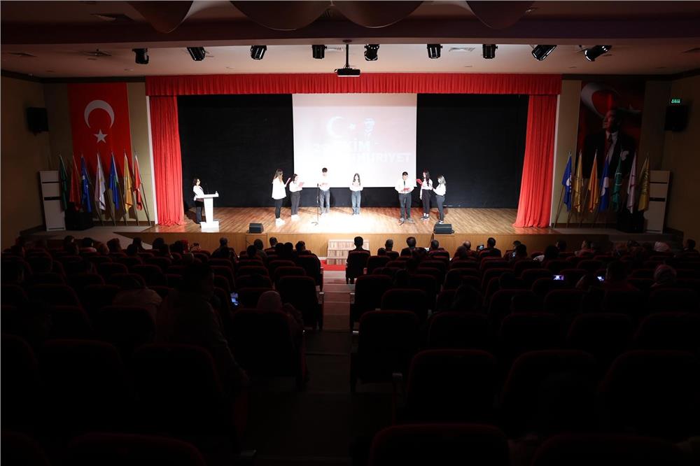 Saygı duruşunda bulunulması ve İstiklal Marşı’nın okunmasıyla başlayan programda, günün anlam ve önemini belirten konuşmalar yapıldı; öğrenciler tarafından şiirler okundu, oratoryo gösterisi ve cumhuriyet temalı videolar ilgiyle izlendi. Başkan Özdoğan; cumhuriyetin Türk Milleti'nin en büyük kazanımı olduğunu vurgulayarak şu değerlendirmelerde bulundu;