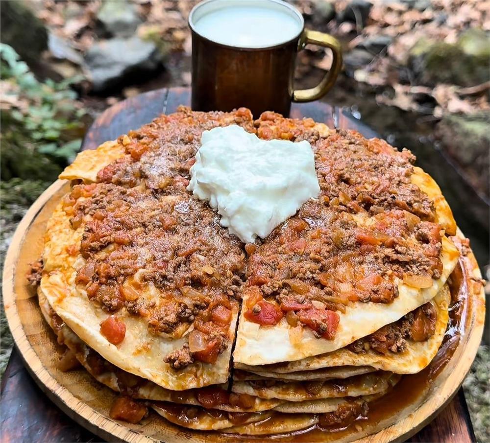Uludağ’ın eşsiz doğa manzarasında yağlama hamuru açıp, kıymasını odun ateşinde pişiren Ateştepe, takipçilerine görsel bir şölen sundu. Kısa sürede binlerce beğeni ve yorum alan video için Ateştepe, “Yapımı zor, lezzeti eşsiz” ifadelerini kullandı.